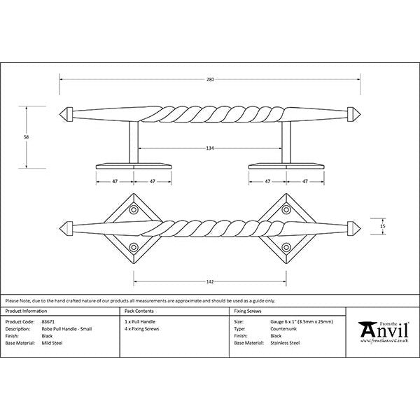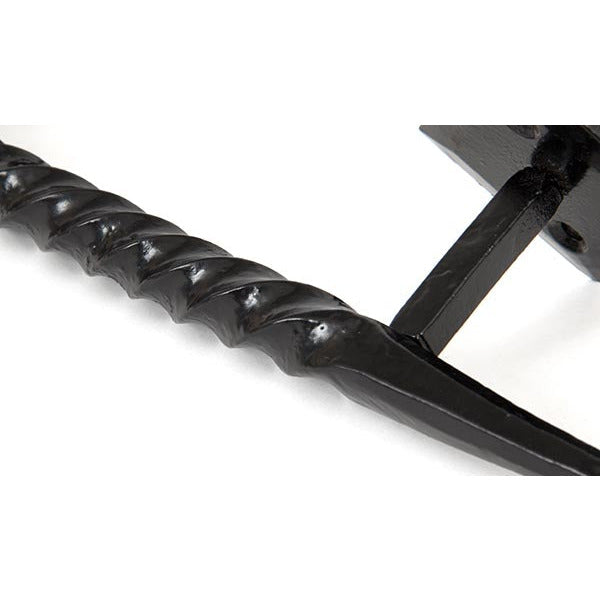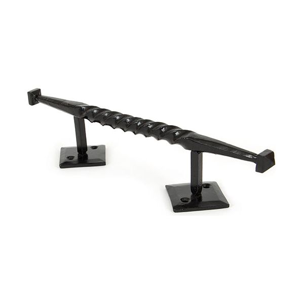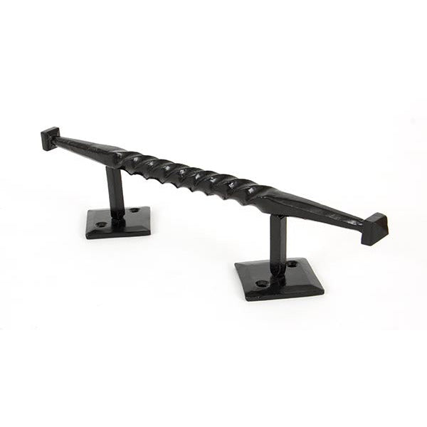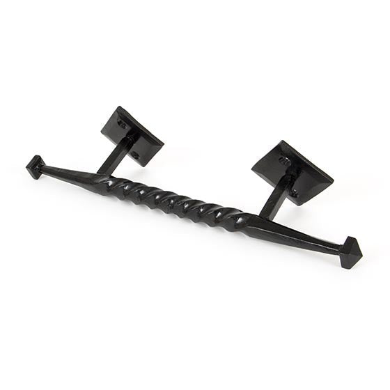 Features an elaborate, twisted pull handle, mounted on decorative fixing plates.