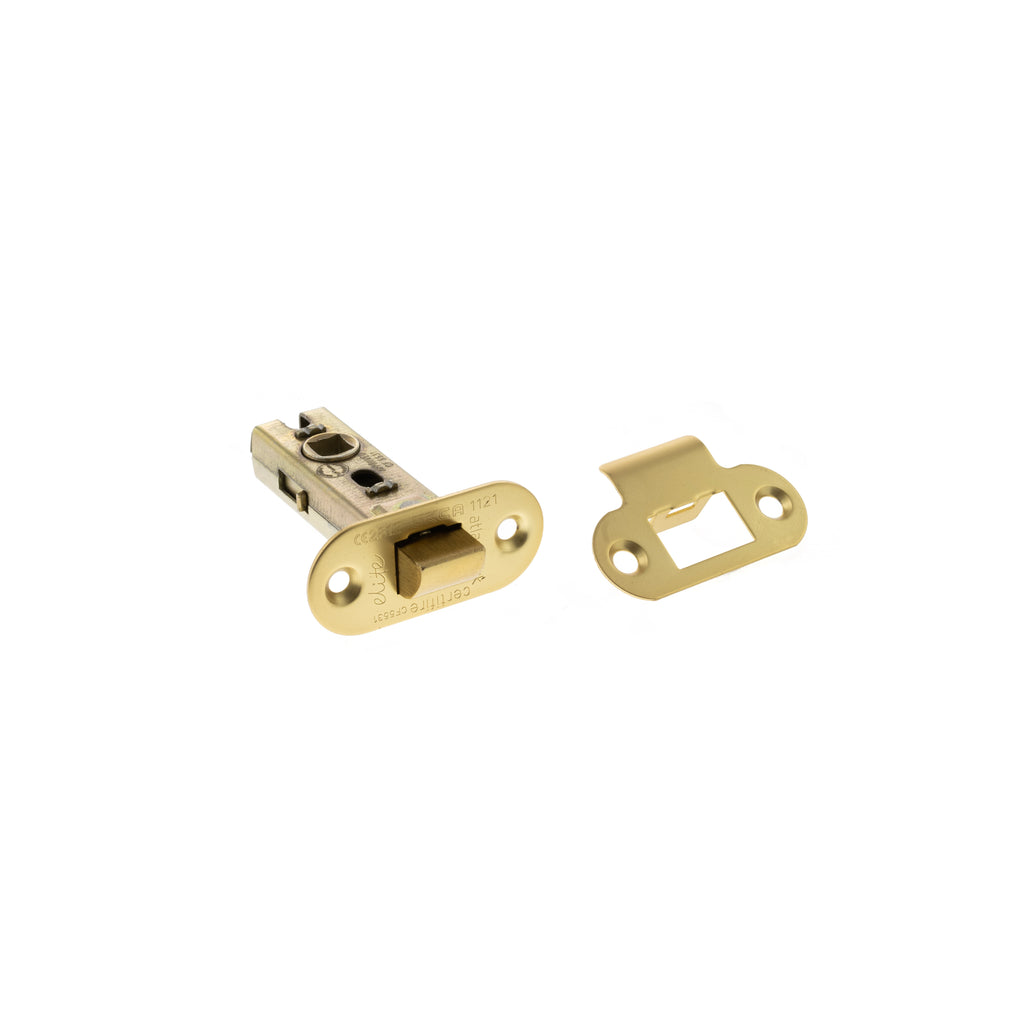 Atlantic Fire-Rated CE Marked Bolt Through Tubular Radius Latch 2.5" - Satin Brass - ALRCE25SB