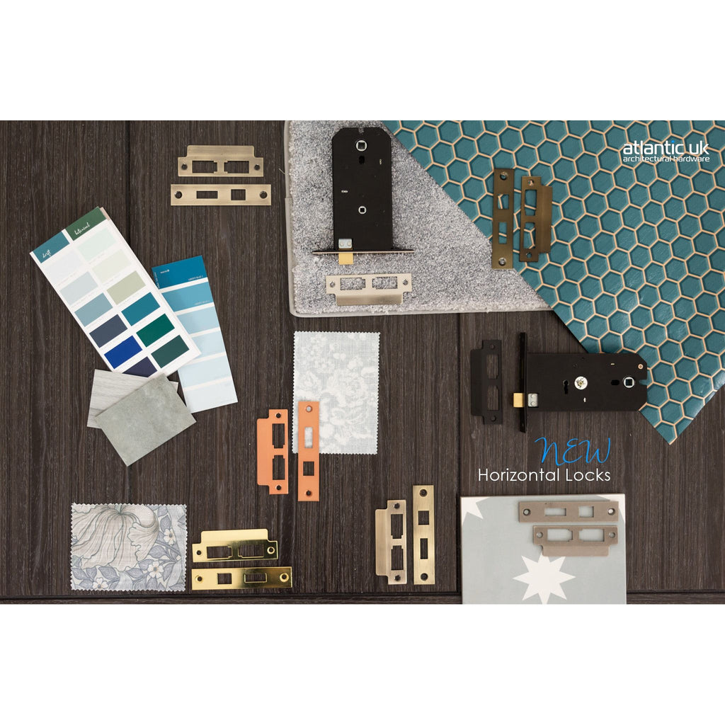 A horizontal lock is designed for products that require a deeper backset, which allows a larger distance from the door frame to the item of hardware. Usually the main item of ironmongery used with horizontal locks is mortice knobs. The Atlantic range includes horizontal 6” Bathroom locks and 3 Lever sashlocks.