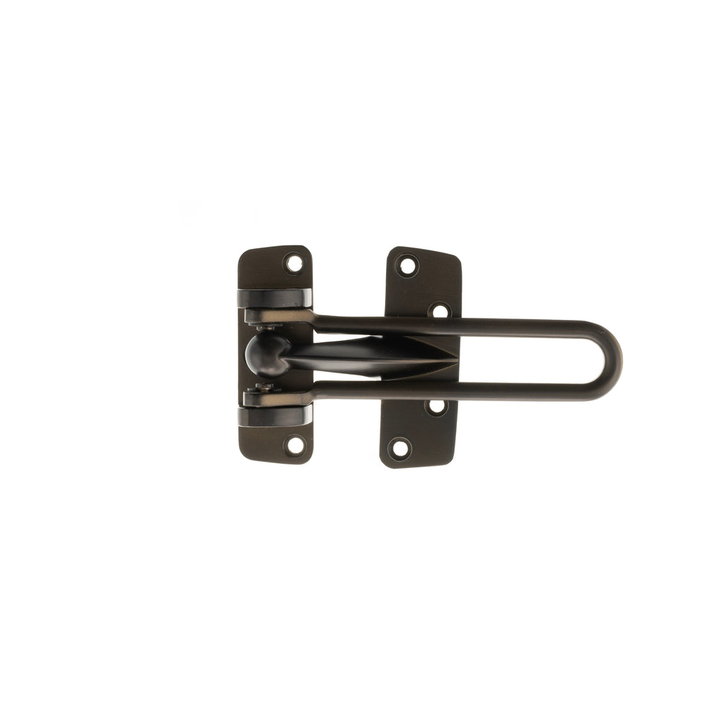 A Door Guard offers extra security to doors by blocking access when the guard is locked.