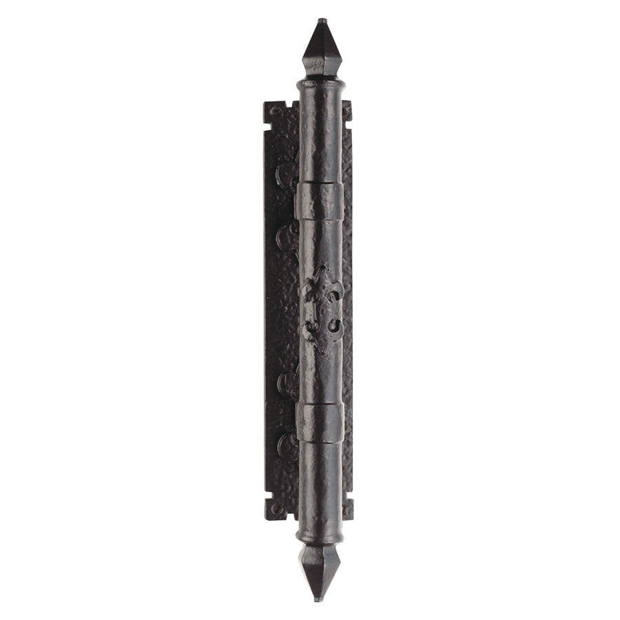 Black Antique traditional style pull handle on backplate which will make a bold and striking addition to any entrance door. The straight armorial handle with pike finials sits on a gothic backplate in which the castle rampant design encompasses the fixing points. This sturdy handle will withstand the rigours of a busy environment such as pubs. Comes with a 10 year mechanical guarantee. Ludlow Black Antique is a traditional range of furniture with a powder coated Black finish.