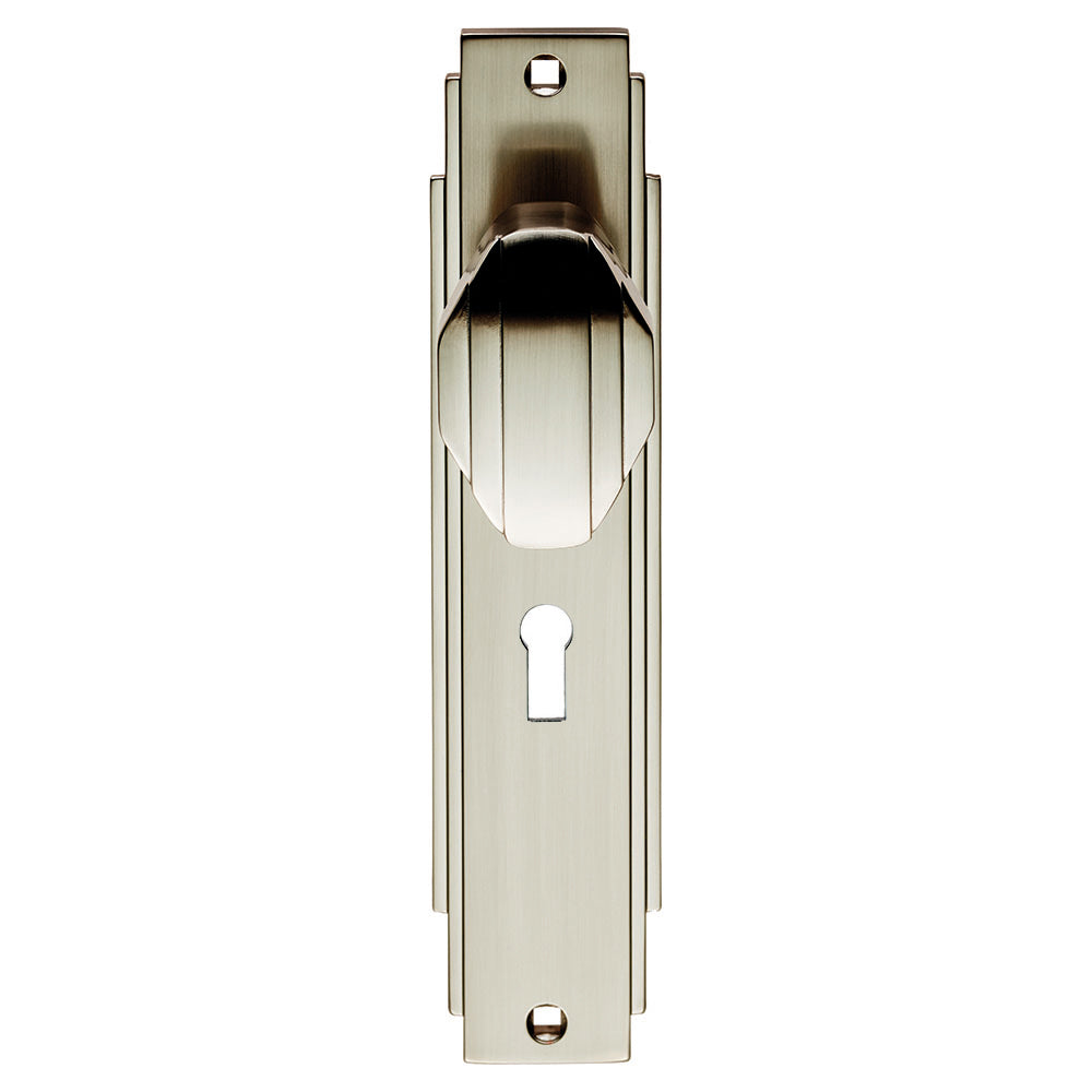 Carlisle Brass - Art Deco Knob on Lock Backplate - Satin Nickel - ADR021SN