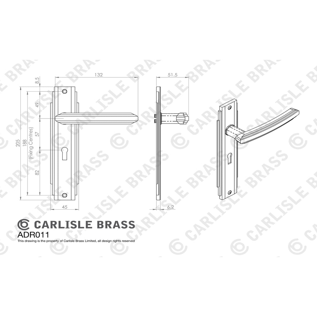 Lever on lock backplate. Standard profile 57mm c/c. This straight lever has stepped lines and an angular cut at either end and with this detailing repeated on the backplate easily captures the essence of the Art-Deco era. The Art Deco range of handles and accessories are simply breathtaking in their sophistication and simply ooze elegance, charm and style. Art Deco never goes out of fashion and they will look absolutely stunning in either traditional or contemporary settings. The initiative from the outset was to achieve quality and excellence in design and the attention to detail reflects this high standard has certainly been realised throughout from conception to the finished product. This product will appeal to specifiers and property owners alike who demand uncompromising quality.