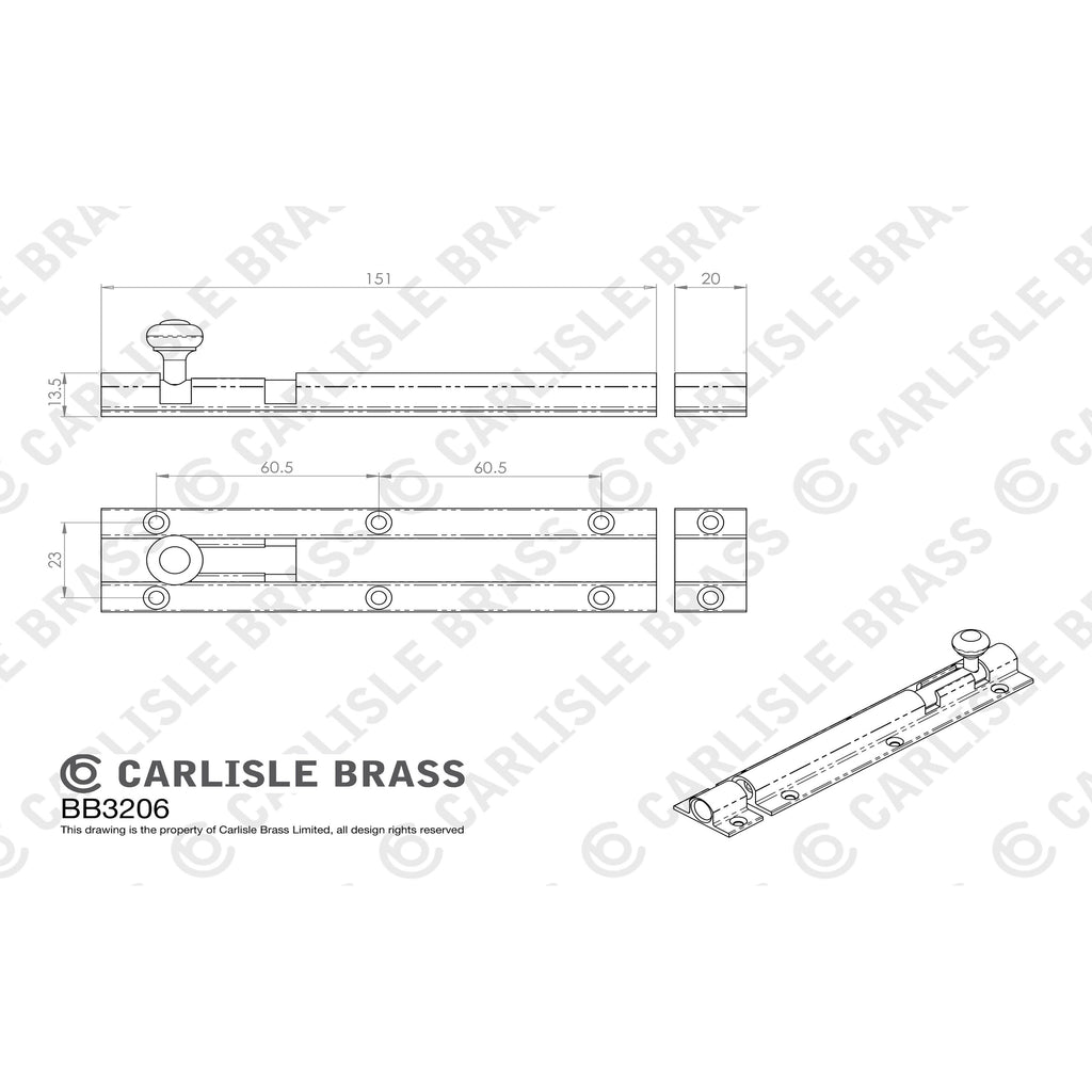 Carlisle Brass - Barrel Bolt 151mm - Satin Chrome - BB3206SC