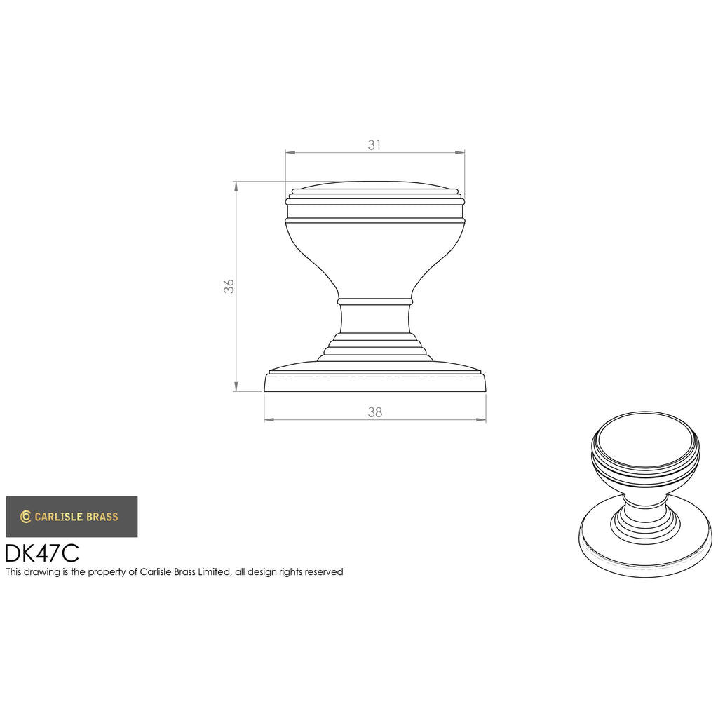 A plain topped knob with sweeping lines around the outer edge on a ringed tiered stem and rose. Designed to compliment the mortice knobs in the Delamain range. Available in different finishes and sizes.