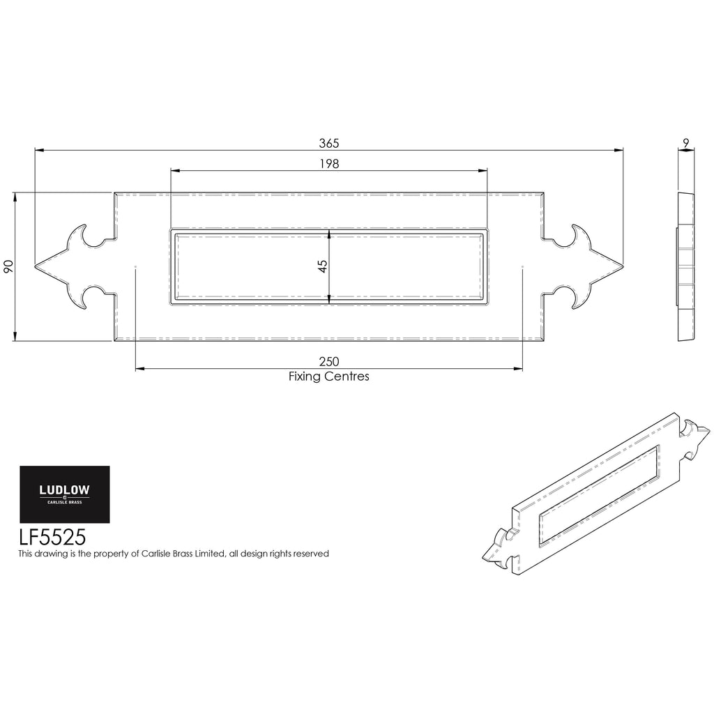Carlisle Brass - Fleur de Lys Letter plate 365mm x 90mm - Black Antique - LF5525