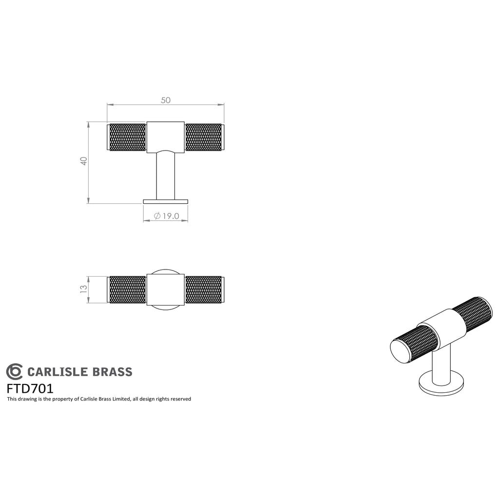 Carlisle Brass - Knurled T-bar Knob 50mm - Satin Nickel - FTD701SN