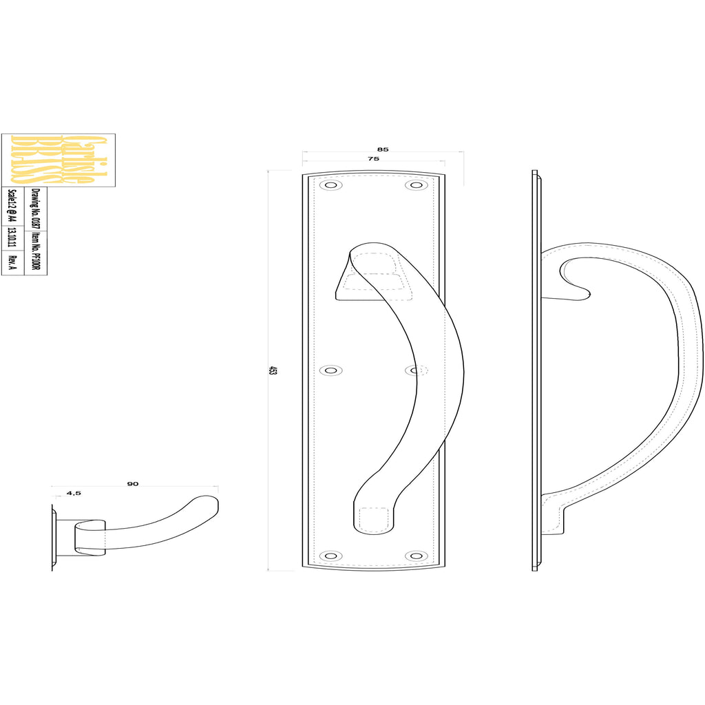 Carlisle Brass - Large Pull Handle Right Hand 457mm x 76mm - Polished Brass - PF100R