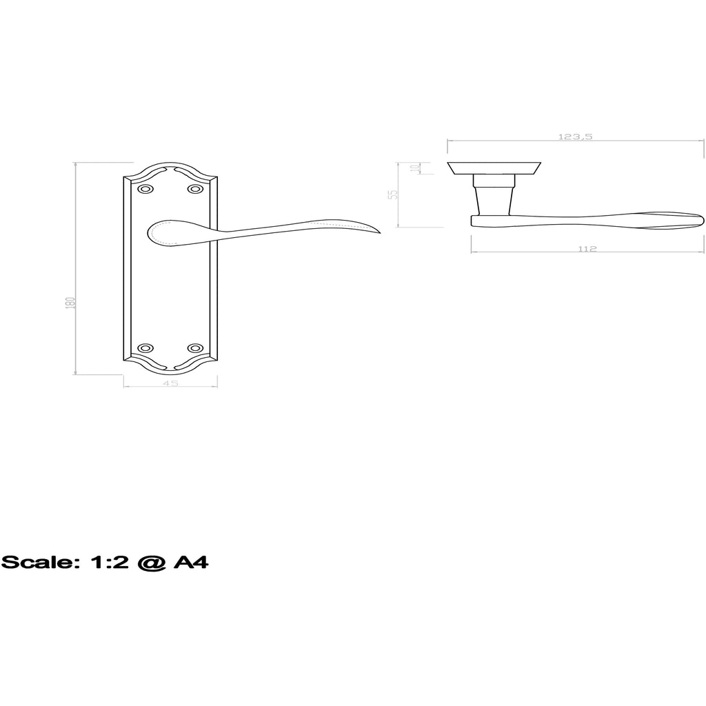 Lever on latch backplate. Classically styled curved lever on a shaped backplate with detailing to both lever and backplate. Suitable for a more traditional doors. Comes with a 10 year mechanical guarantee and is Fire door rated.
