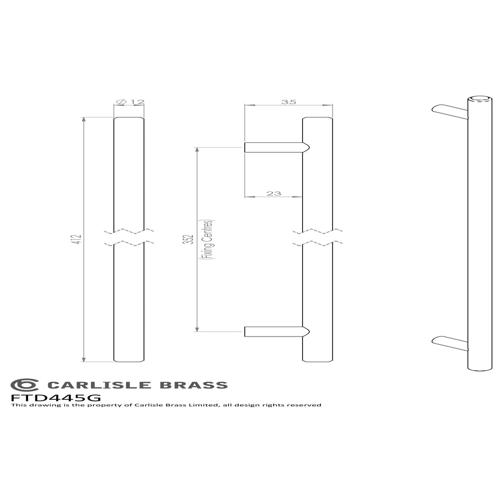 Carlisle Brass - Steel T-Bar Handle 352mm - Polished Chrome - FTD445GCP