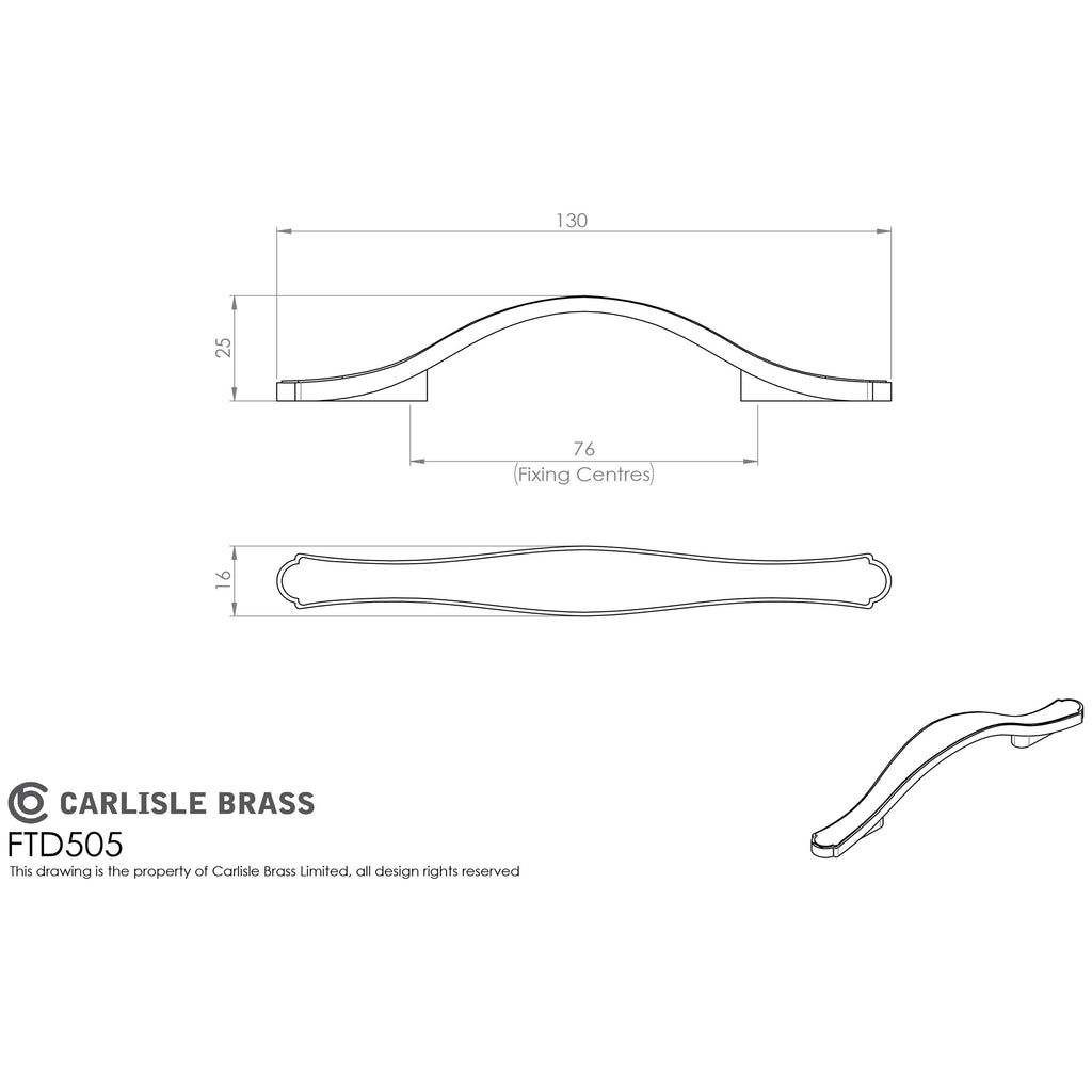 Carlisle Brass - Stepped Edge Bow Handle 76mm - Antique Burnished Brass - FTD505ABB