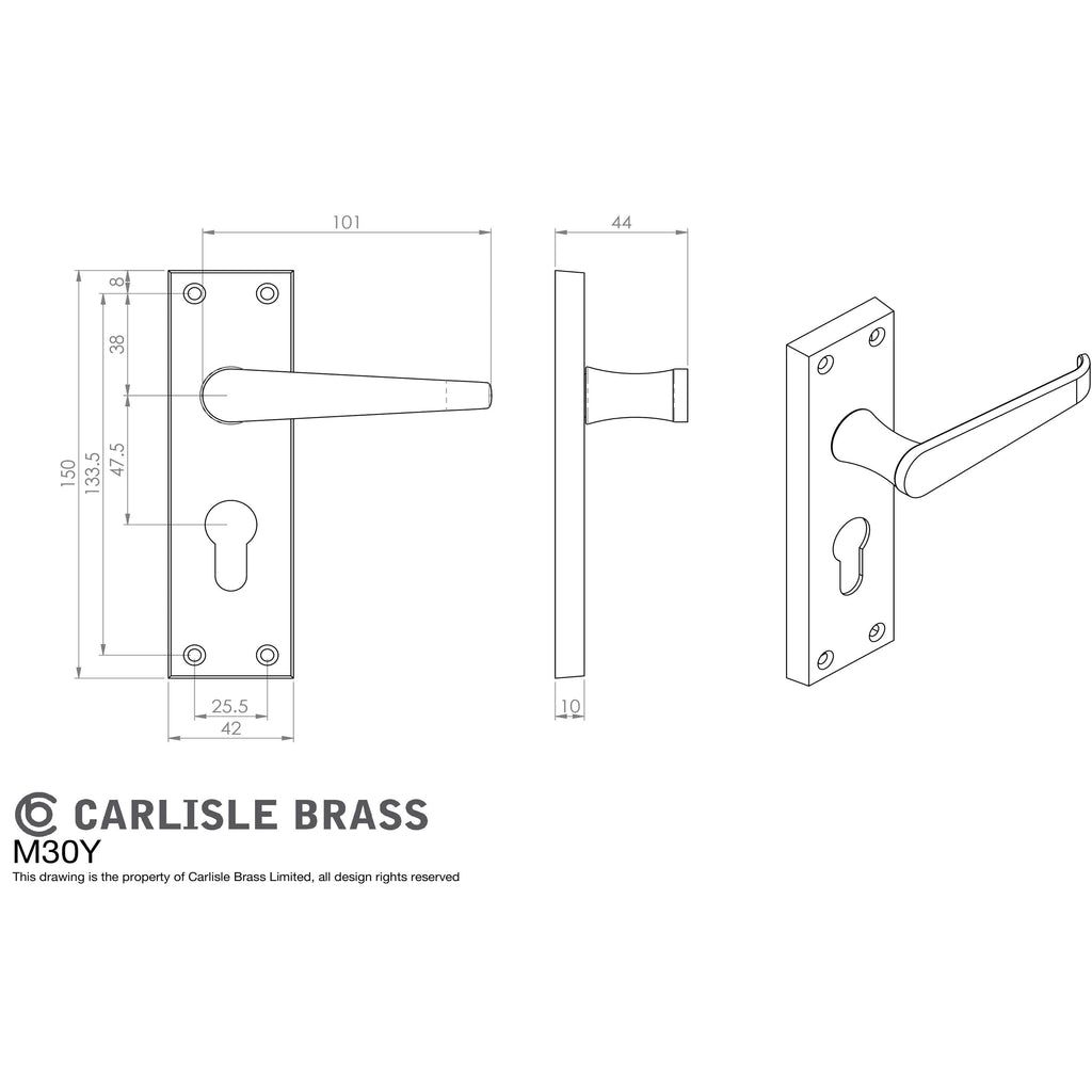 Carlisle Brass - Victorian Lever on Euro Lock Backplate - Polished Brass - M30Y