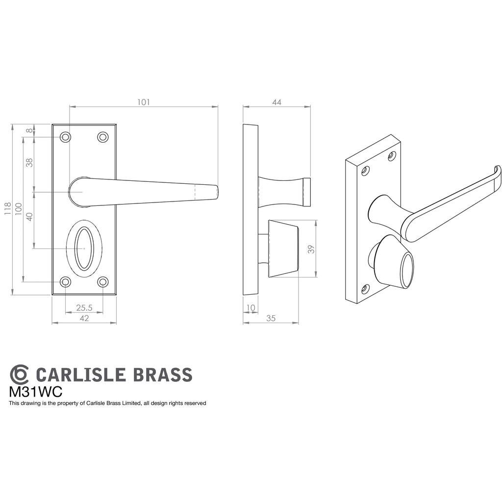 Carlisle Brass - Victorian Lever on Privacy Backplate - Satin Chrome - M31WCSC