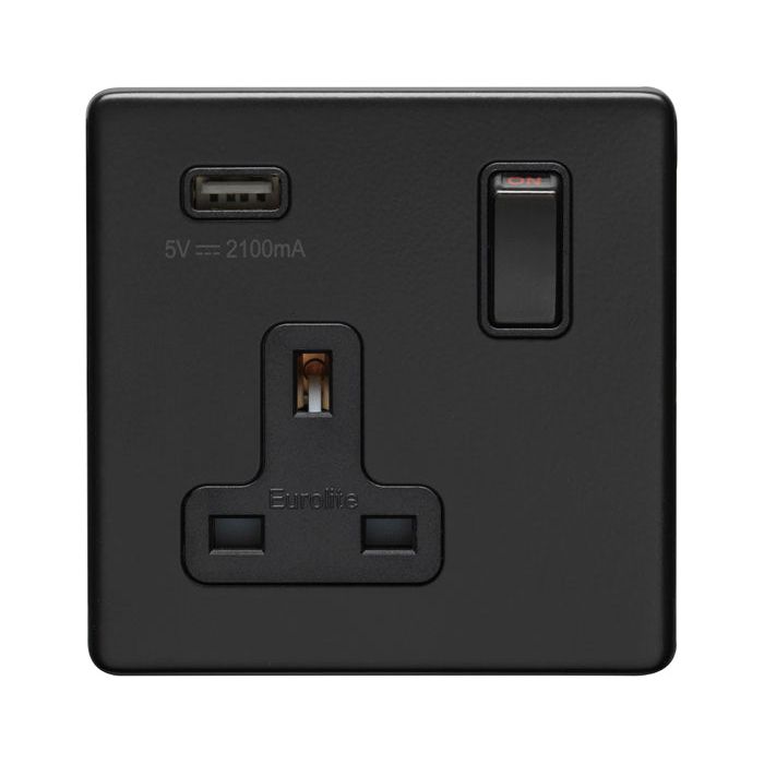 Eurolite Concealed 3mm 1 Gang Usb Socket - Matt Black - ECMB1USBB