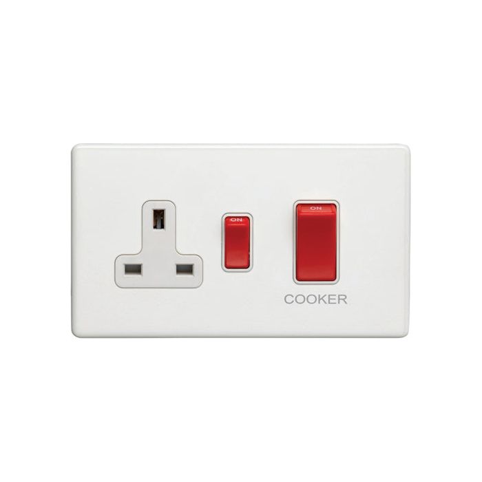 Eurolite Concealed 3mm 45Amp Switch With A Socket - Matt White - ECW45ASWASW