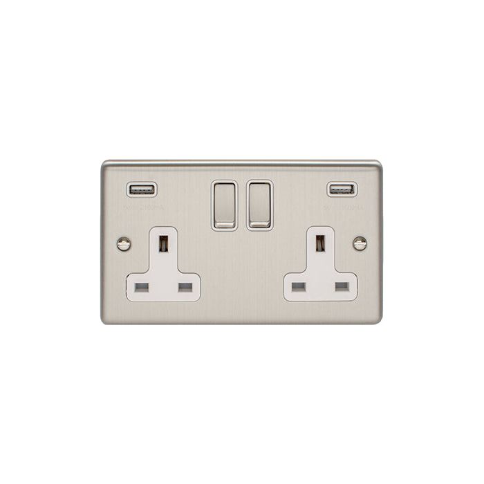 Eurolite Enhance Decorative 2 Gang Usb Socket - Satin Stainless - EN2USBSSW
