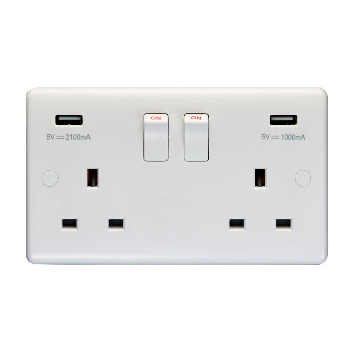 Eurolite Enhance White Plastic 2 Gang Usb Socket - White - PL4620