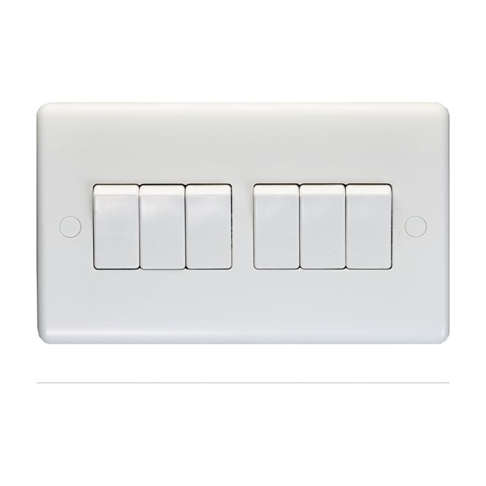 Eurolite Enhance White Plastic 6 Gang Switch - White - PL3062