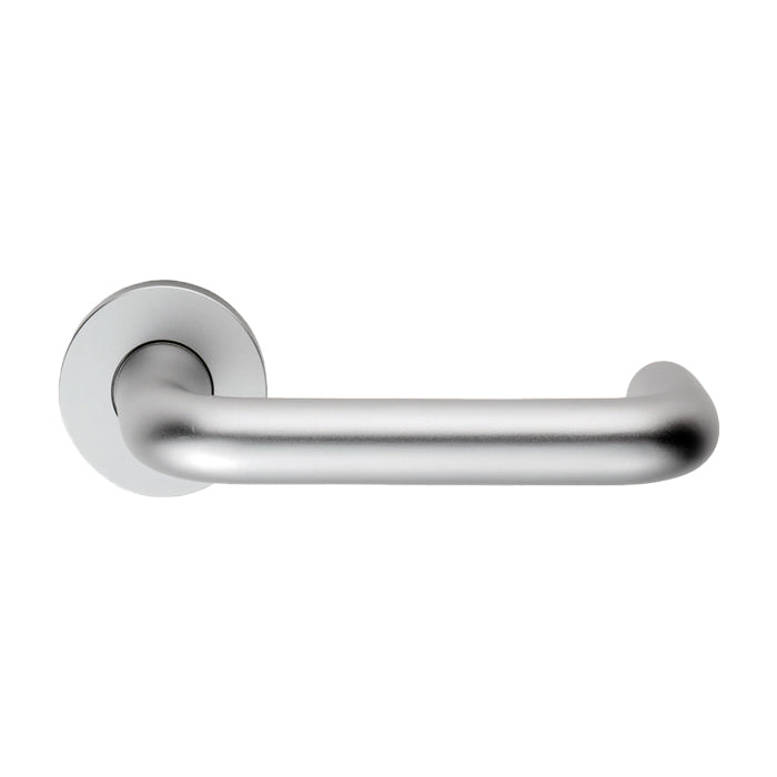 A sturdy 19m Dia. round bar safety lever on a concealed fix press on round sprung rose. The handle returns back to the door offering reduced risk of catching clothes or injury. DDA Compliant. Certified to British Standards BS EN 1906 and BS8300 designed to meet the needs of disabled people. Comes with a 10 year mechanical guarantee and is fire door rated. Suitable for domestic and commercial use.