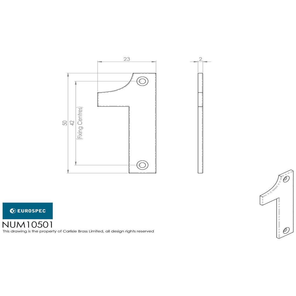 Eurospec - 50mm Door Numerals Number 1 - Satin Stainless Steel - NUM10501SSS
