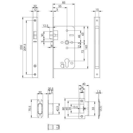 Eurospec - DIN Euro Nightlatch-Satin Stainless Steel-Square-55mm - Stainless Steel - DLX7255NLSSS