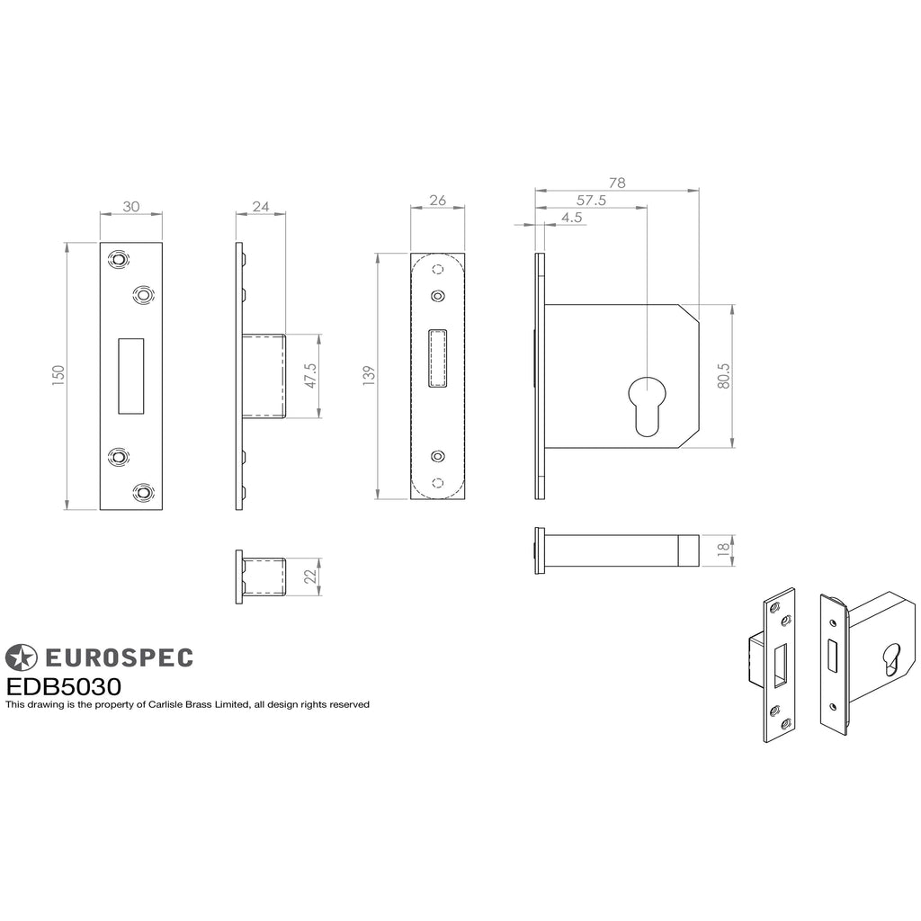 Eurospec - Euro Profile BS Cylinder Deadlock 76mm - Satin Stainless Steel - EDB5030/CT/SSS