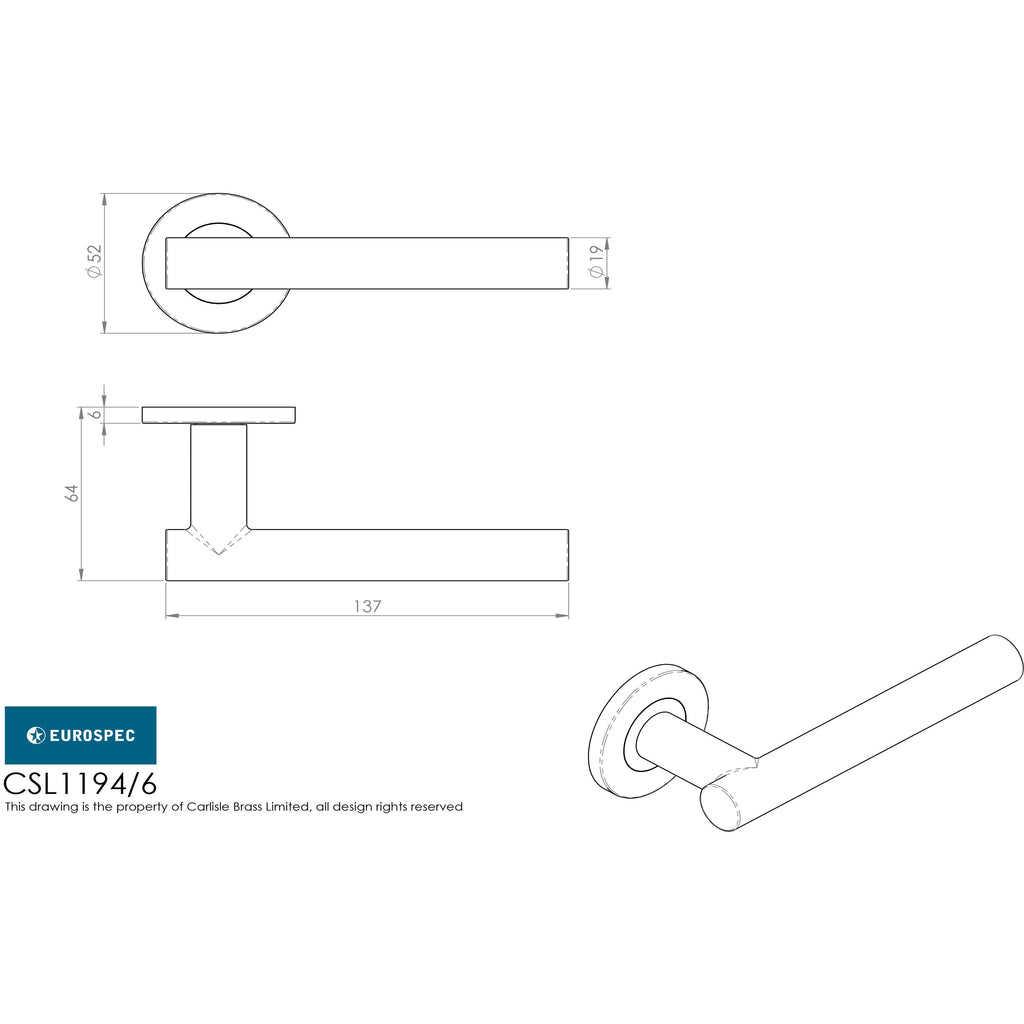 Philadelphia Lever on concealed fix press on sprung round rose. A straight round T-bar lever neatly mitred across the stem. The CSL lever collection on a slim fit rose reflects the latest trends for subtle discreet fittings with ultra-modern styling and quality engineering. All levers are G304 grade with Grade 201 rose inners and a secure heso spindle fix, ensuring these products are of the highest calibre at competitive pricing. Comes in a compact design box providing minimum waste and more efficient stocking capability. Certified to BS EN 1906. Carries with a 10-year mechanical guarantee and is Fire Door rated. Suitable for domestic and commercial environments.