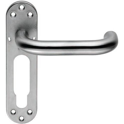 Safety lever on a Steel Inner Backplate. A multi function handle template which serves as a base for alternative covers making this a very useful and flexible product. Various covers can be fitted over the template thus converting it into a lock, latch or bathroom assembly as required. Lock options consist of; Euro, Oval, and Standard profile in various centres. The covers to be ordered separately . The safety lever is a round bar return to door type and the assembly and optional covers meet BS Standard 8300 for disabled people. Comes with a 25 year mechanical warranty and is Fire rated. Suitable for fitment in all domestic, commercial and industrial environments. Part of the Steelworx range in grade 316 Stainless Steel.