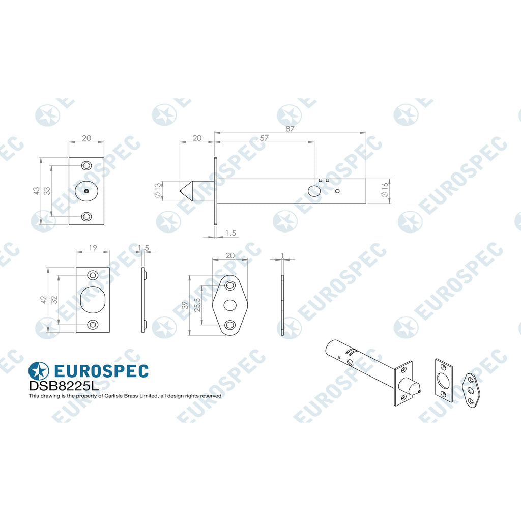 Contract Door Security Bolt, (Long version) sometimes called a Rack Bolt. The bolt is morticed inside the door edge and can be locked or unlocked via a separate splined key or with a fixed splined turn. The bolt has an internal sawtooth rack mechanism into which the splined key is inserted. The spline engages with the rack teeth and forms a gearing action which smoothly operates the bolt. Splined Key or Turn to be ordered separately. Short version also available Comes with a 5 year mechanical guarantee. Suitable for use in all domestic, industrial and commercial environments.