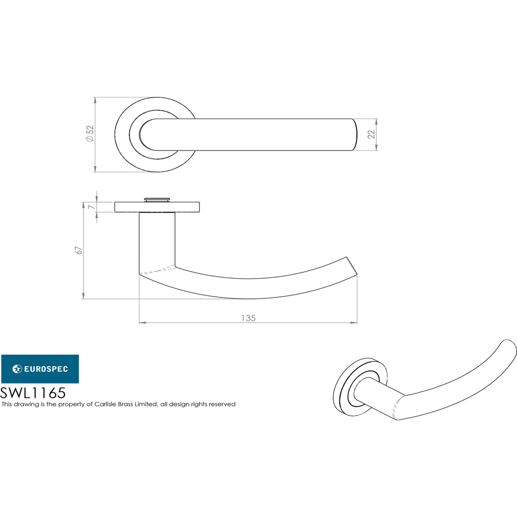 Lever on a concealed fix threaded rose. The rounded lever is slightly curved making for a comfortable grip. Part of the Steelworx range in grade 304 Stainless Steel. Certified to BS EN 1906. Comes with a 10 year mechanical guarantee and is Fire door rated. Suitable for domestic and commercial use.