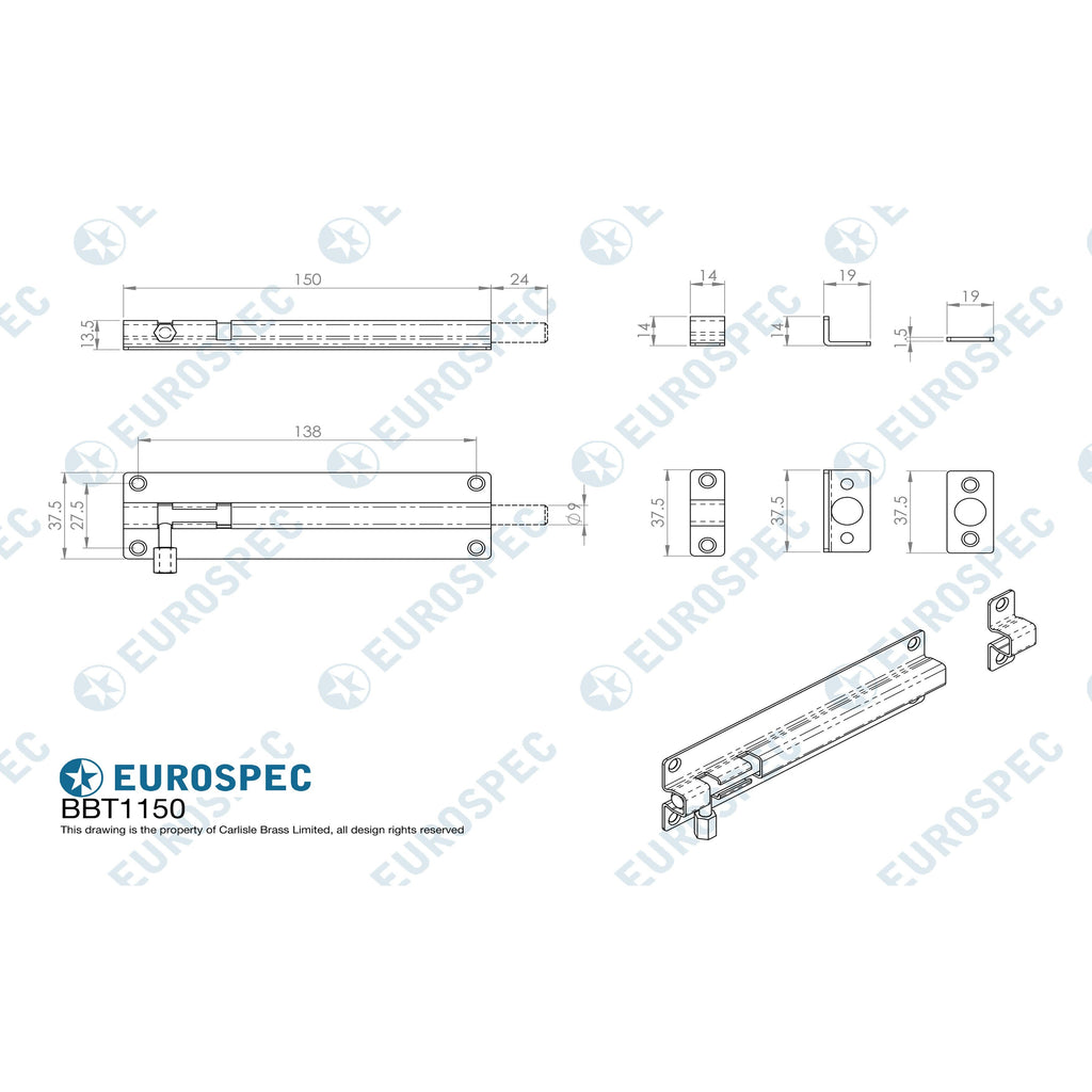 Eurospec - Straight Barrel Bolt - Satin Stainless Steel - BBT1150SSS