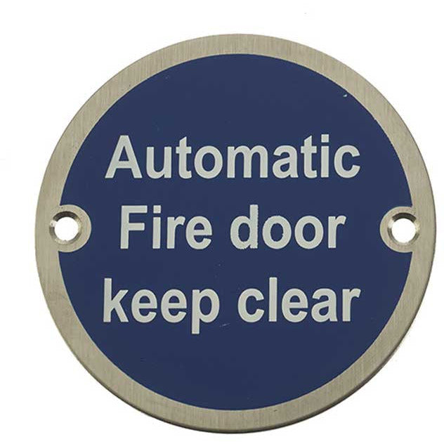 Frelan - 75mm dia, Automatic Fire Door Keep Clear Sign - Satin Stainless Steel - JS110SSS