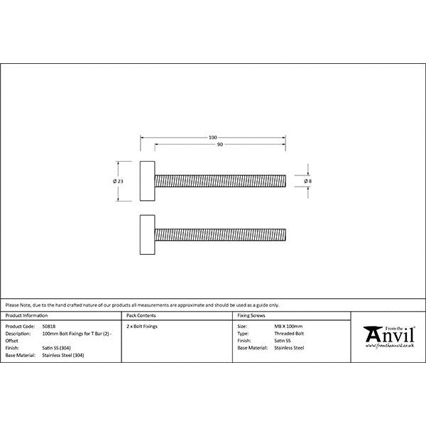 From The Anvil - 100mm Bolt Fixings for T Bar (2) - Offset - Satin Stainless Steel - 50818