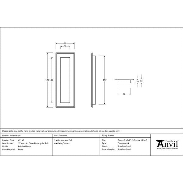 From The Anvil - 175mm Art Deco Rectangular Pull - Polished Brass - 47157