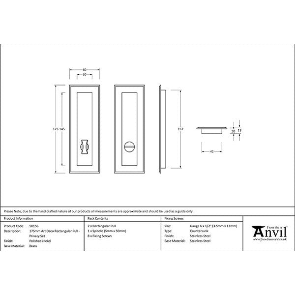 From The Anvil - 175mm Art Deco Rectangular Pull -Privacy Set - Polished Nickel - 50156