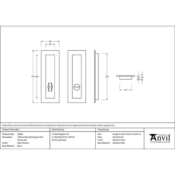 From The Anvil - 175mm Plain Rectangular Pull - Satin Chrome - 50638