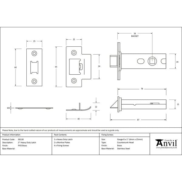 From The Anvil - 3" Heavy Duty Latch - PVD Brass - 90130