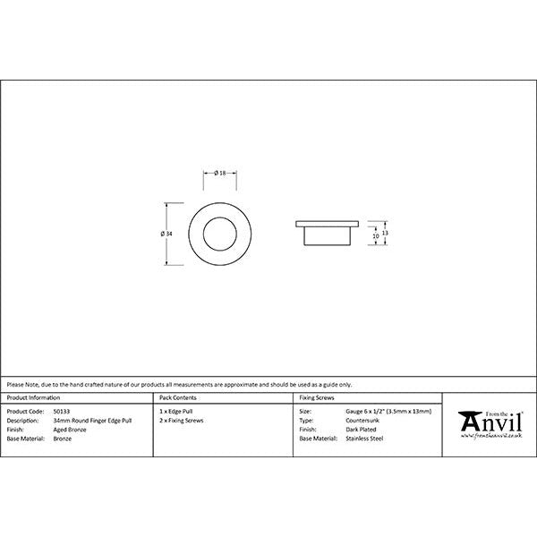 From The Anvil - 34mm Round Finger Edge Pull - Aged Bronze - 50133