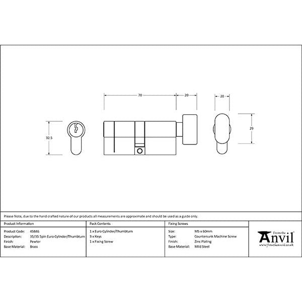 From The Anvil - 35/35 5pin Euro Cylinder/Thumbturn - Pewter Patina - 45846