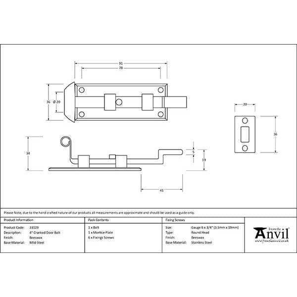 From The Anvil - 4" Cranked Door Bolt - Beeswax - 33129