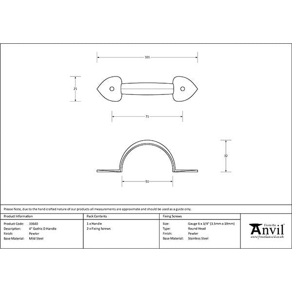 From The Anvil - 4" Gothic D Handle - Pewter Patina - 33640