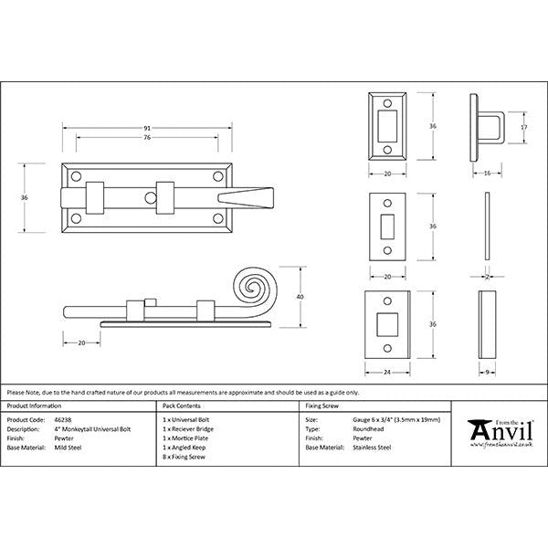 From The Anvil - 4" Monkeytail Universal Bolt - Pewter Patina - 46238