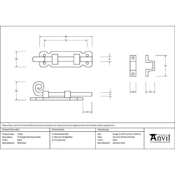 From The Anvil - 4" Straight Monkeytail Bolt - Black - 73132