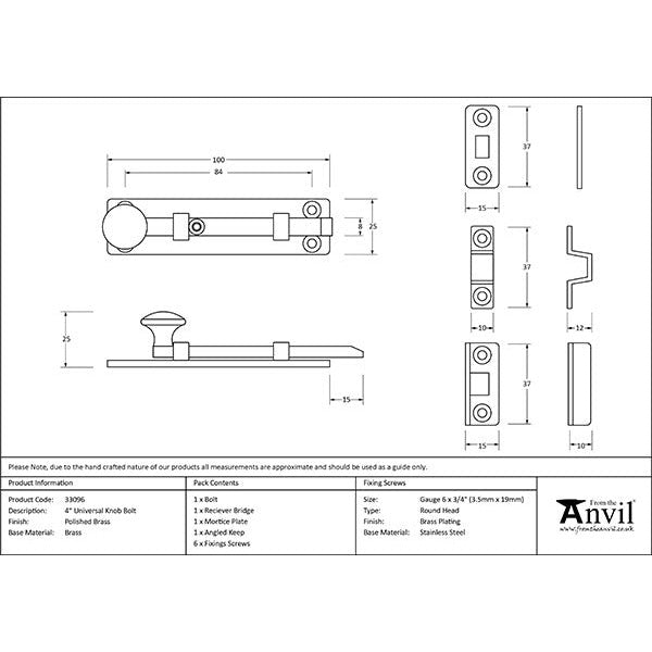 From The Anvil - 4" Universal Bolt - Polished Brass - 33096