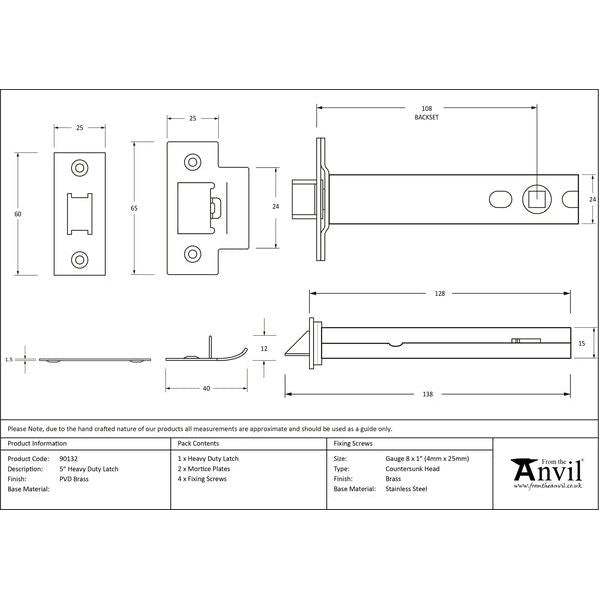 From The Anvil - 5" Heavy Duty Latch - PVD Brass - 90132