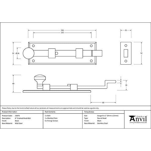 From The Anvil - 6" Cranked Knob Bolt - Black - 33979