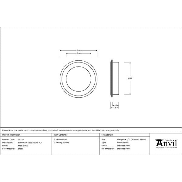 From The Anvil - 60mm Art Deco Round Pull - Matt Black - 50214