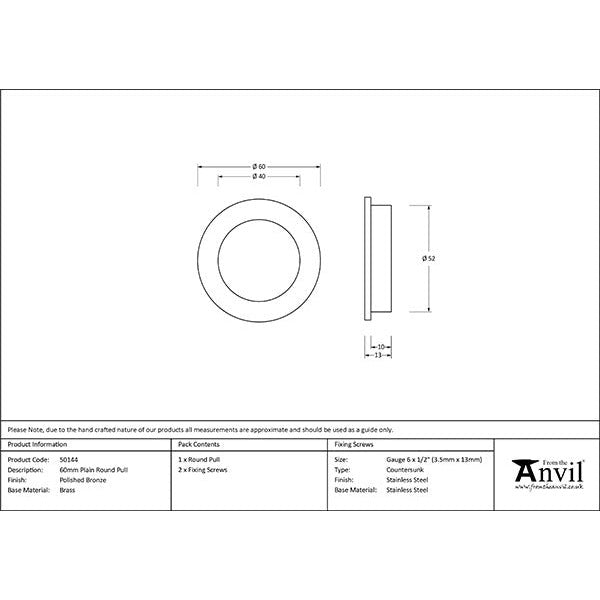 From The Anvil - 60mm Plain Round Pull - Polished Bronze - 50144