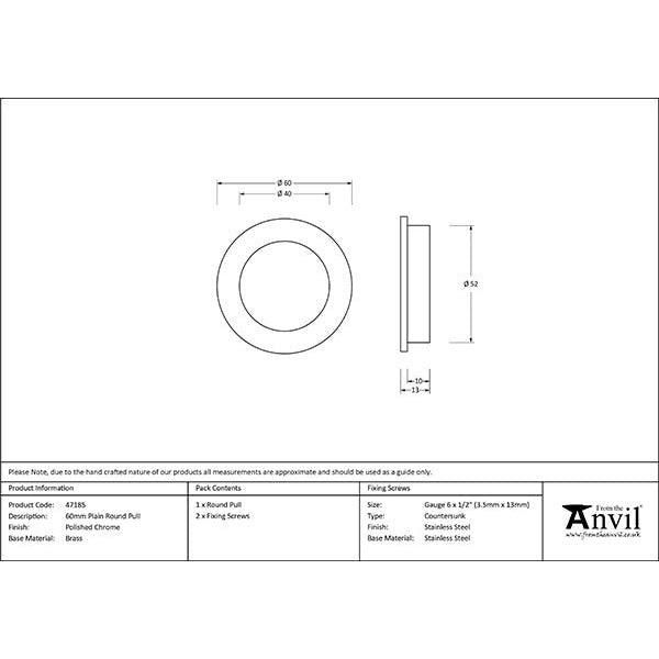From The Anvil - 60mm Plain Round Pull - Polished Chrome - 47185