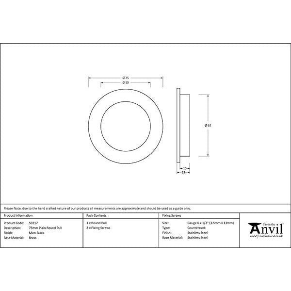 From The Anvil - 75mm Plain Round Pull - Matt Black - 50217
